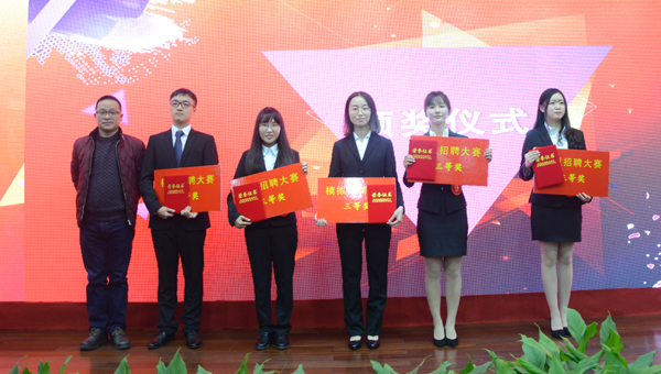 模拟招聘决赛现场,选手们通过“职我本色、职面未来、职场亮剑、职为等你”等环节的激励角逐,最终评选出一等奖1名,二等奖3名,三等奖5名。黄色仓库
