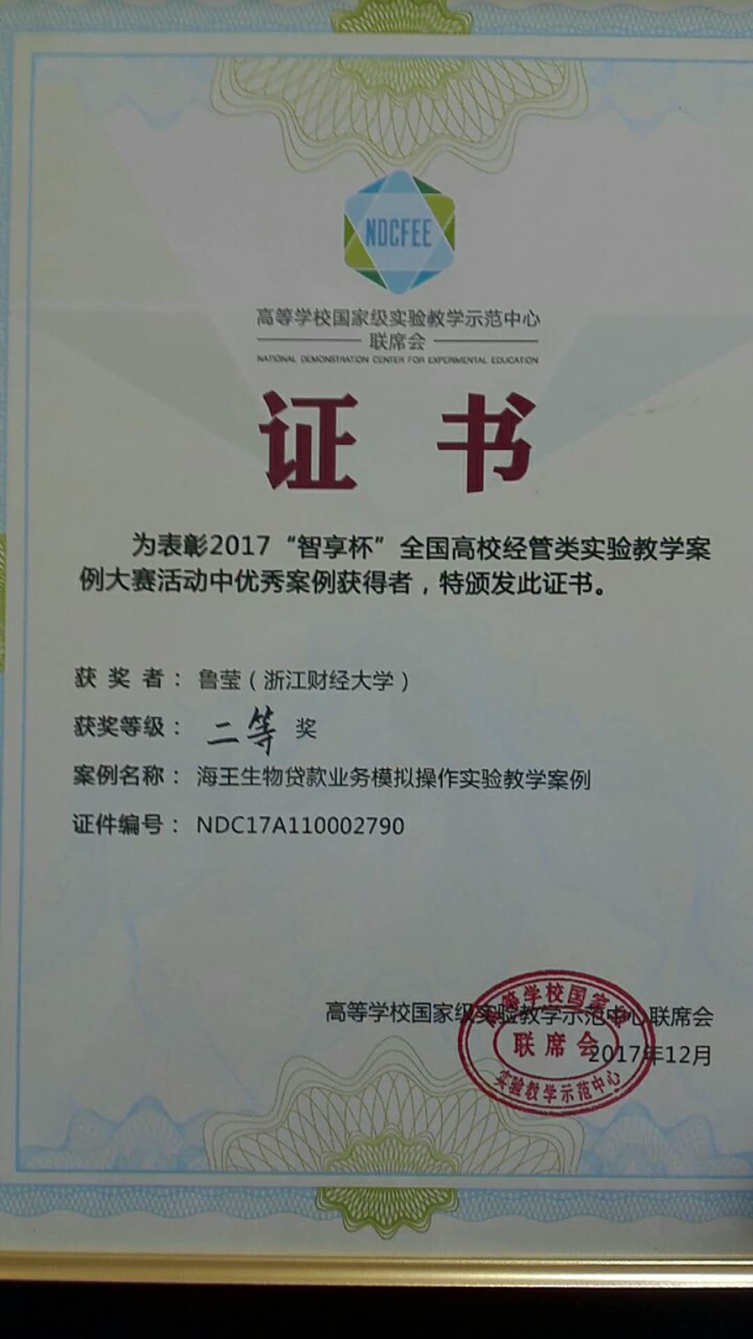 黄色仓库 鲁莹老师的“海王生物贷款业务模拟操作实验教学案例”在2017第二届“智享杯”全国高校经管类实验教学案例大赛决赛中喜获二等奖