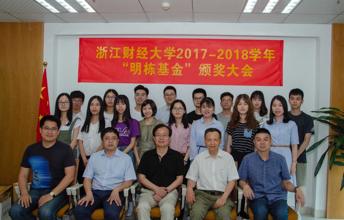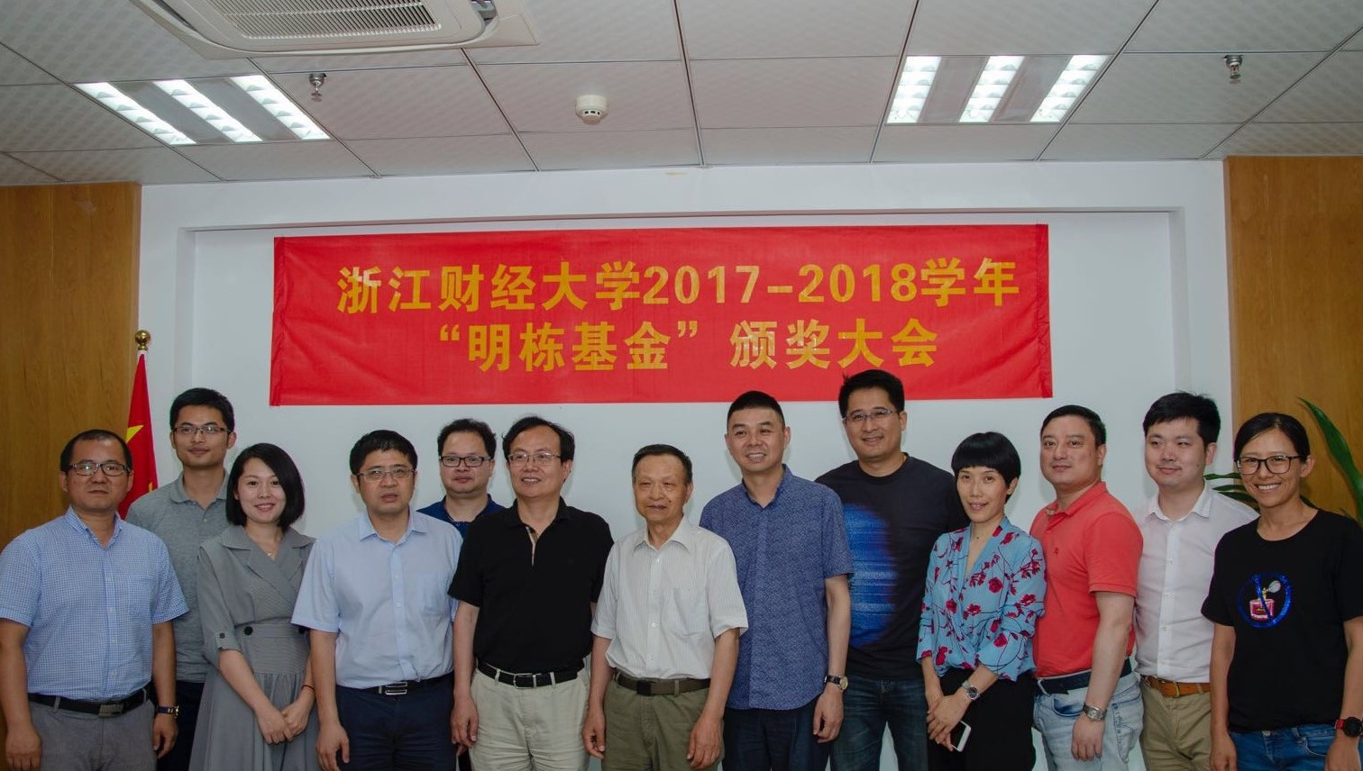6月7日,2017-2018学年“明栋基金”筑梦奖颁奖大会在校友企业浙江盈阳资产管理股份有限公司举行。蓝山投资有限公司董事长王晓明,浙江盈阳资产管理股份有限公司创始人楼栋,蓝山投资有限公司总裁王柳琳,关瑞慈善基金会执行会长吕霞,校友总会副会长兼秘书长、副校长黄建新, 原黄色仓库