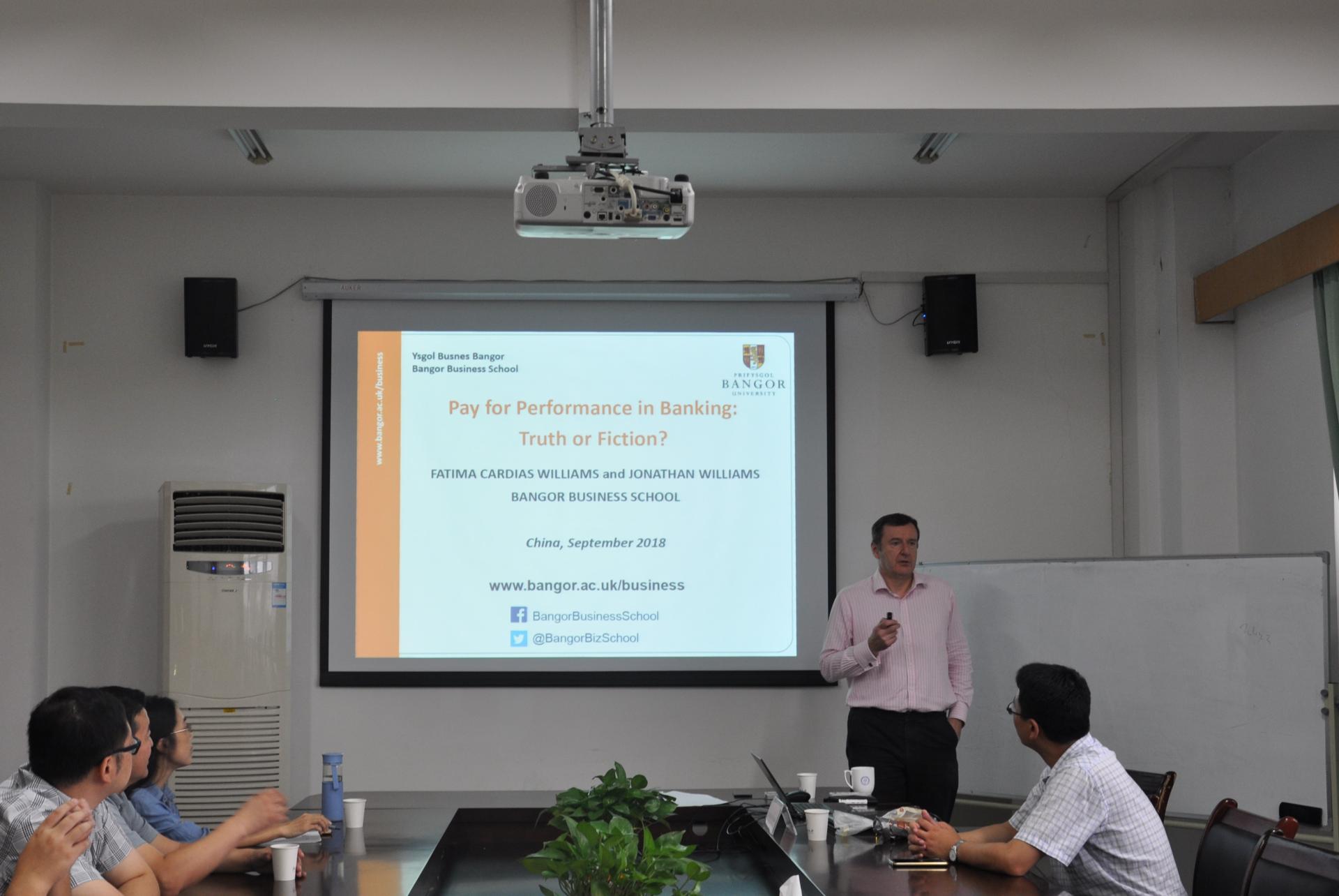 9月21日上午10点,英国班戈大学商学院院长、银行与金融专业教授Jonathan Williams教授应邀在黄色仓库