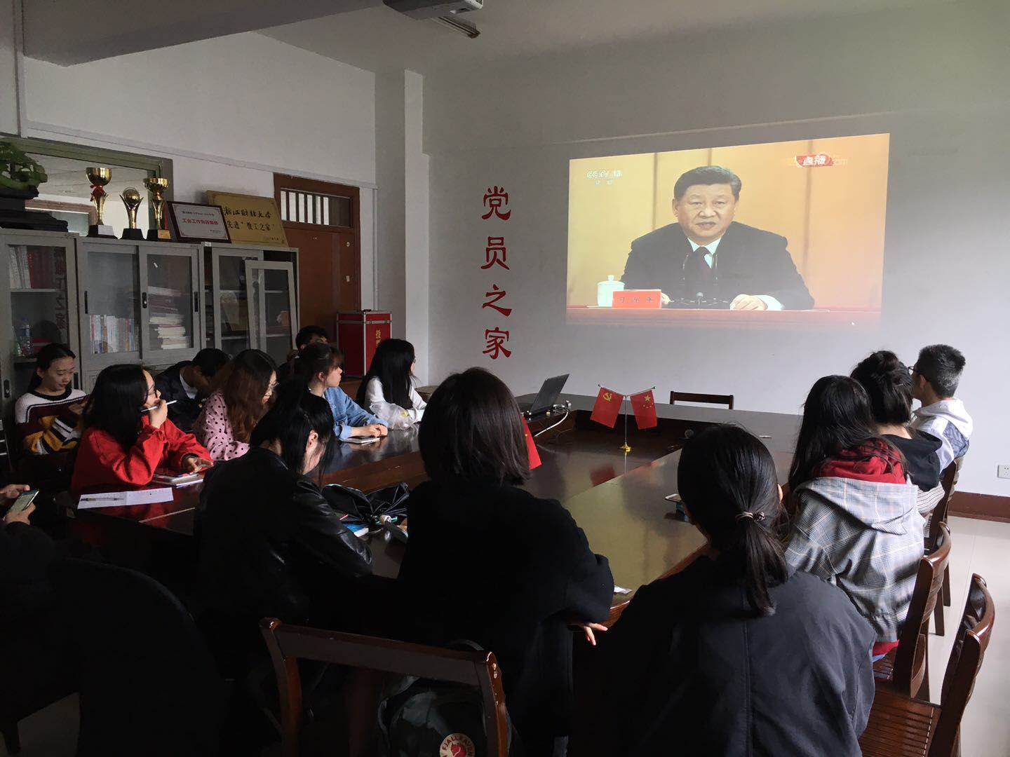 青年学生骨干在党员之家组织收看纪念五四运动100周年大会