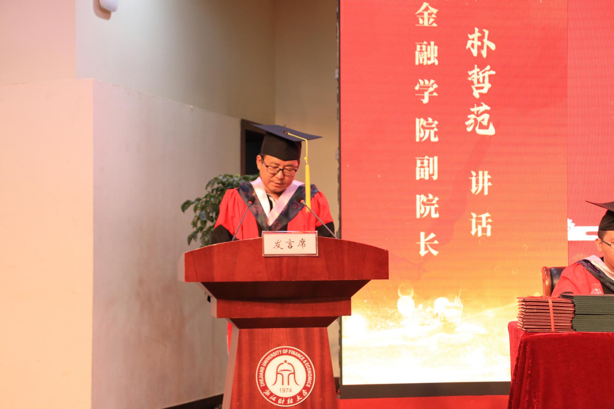 副院长王聪聪、朴哲范分别宣读了2019届毕业生获得毕业证书和学位证书情况、2019届毕业生境内外升学情况,党委书记蔡国金宣读了2019届省级优秀毕业生、“明栋基金”获奖名单。