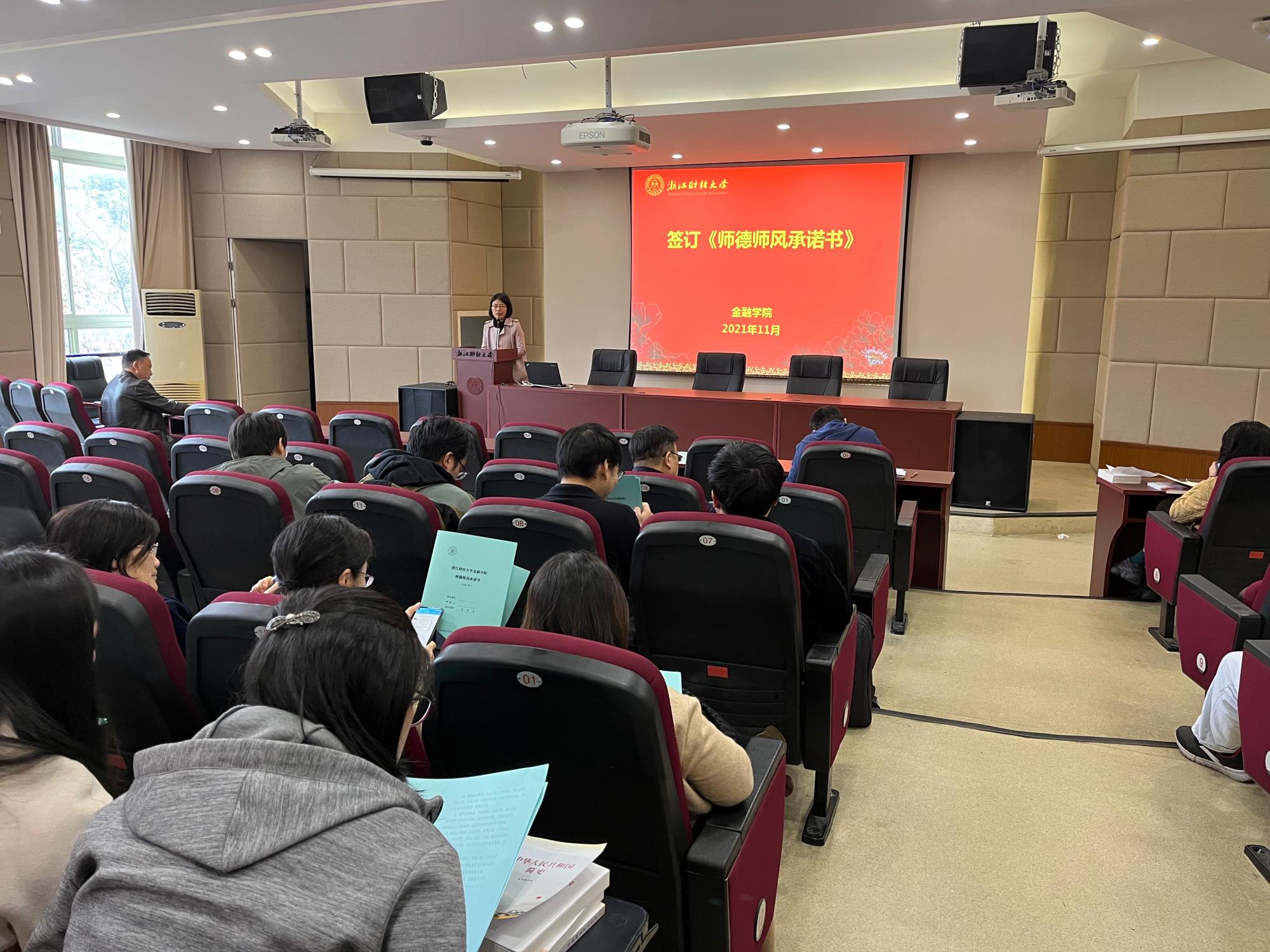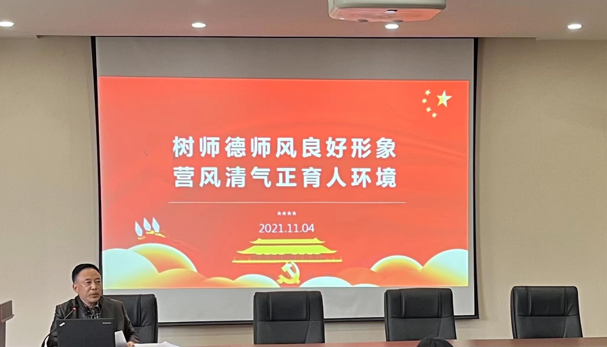 在学院楼202报告厅召开了师德师风专题学习会。会议由院党委书记蔡国金主持,全体教职工参加。