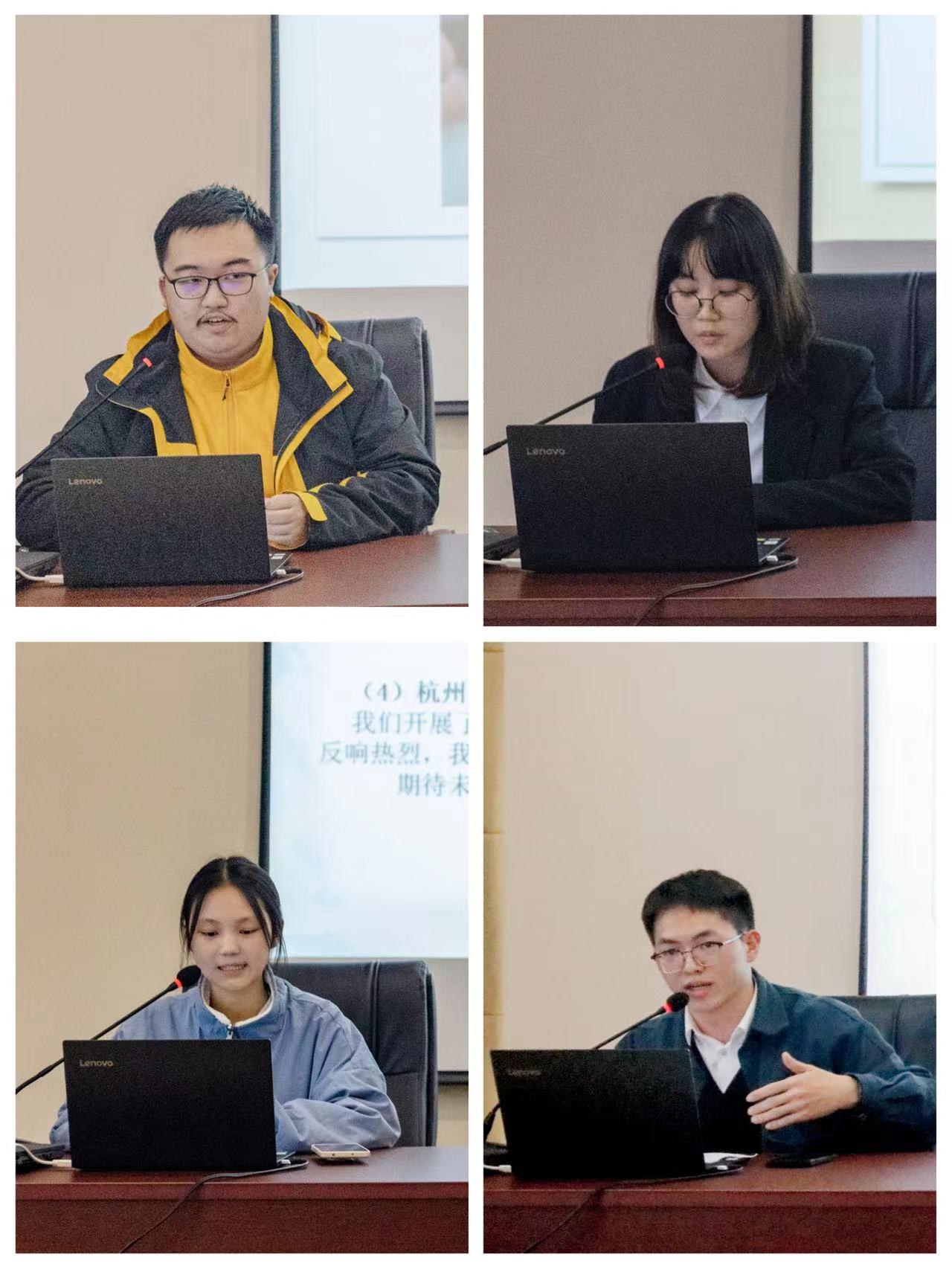 在社团建设经验分享环节,四位优秀的会长结合各自社团的建设成果,分享了社团建设经验。杭州电子科技大学科技创新协会会长贺业祺从发展理念、结构建设、培养体系三个方面,介绍了自身社团的管理特色和荣誉情况。学生会计学会会长何雨欣则表示要从内外两个方面促进社团的健康发展,以学术之风,扬会计之名。法学院法学会会长王思颖结合法学会法律实务体验、社会法律服务等日常活动,强调了开展项目创新、培养团队精神的重要性。金融学会会长方嘉鹏表示在社团建设中加强内部学术思想建设的同时,要积极拓宽对外交流合作的渠道,加强自身创新建设。