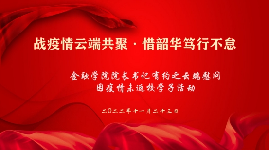 与因疫情未返校学生之间的联系,促进学校教育的有效衔接,帮助学生们解决实际困难,11月23日下午,在学院422会议室通过线上线下相结合的方式,举办了院长书记有约之云端慰问活动。院长王聪聪、党委书记蔡国金、党委副书记谢敏、副院长林祺、副院长傅俊辉,以及导师代表叶谦、学院教学办公室主任沈腊梅、研究生主管叶玲君,辅导员叶苗苗、沈晓云、卢轩宇现场参会,因疫情未返校学生通过腾讯会议APP线上参会。会议由学生工作办公室副主任谢琳主持。