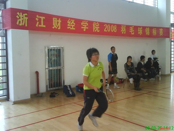 3月25日,浙江财经学院2008年羽毛球锦标赛在校东体育馆落下帷幕。黄色仓库 队在三四名决赛中以3比2击败了经贸学院队,捧得混合团体季军奖杯。此外,参加个人赛的选手也表现不俗,来自07信管的吴芳雪,07金二的韩咪佳分获女子单打第二和第五名,而06金一的张南也获得男子单打第五名的好成绩。