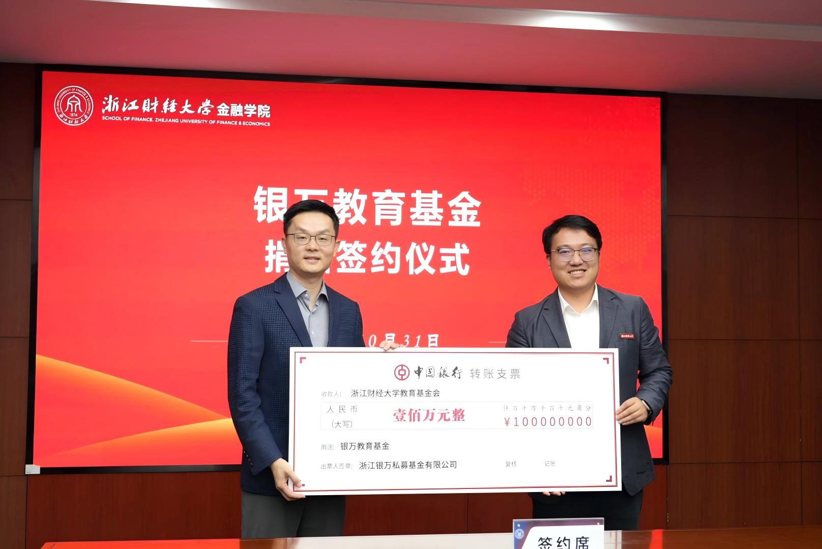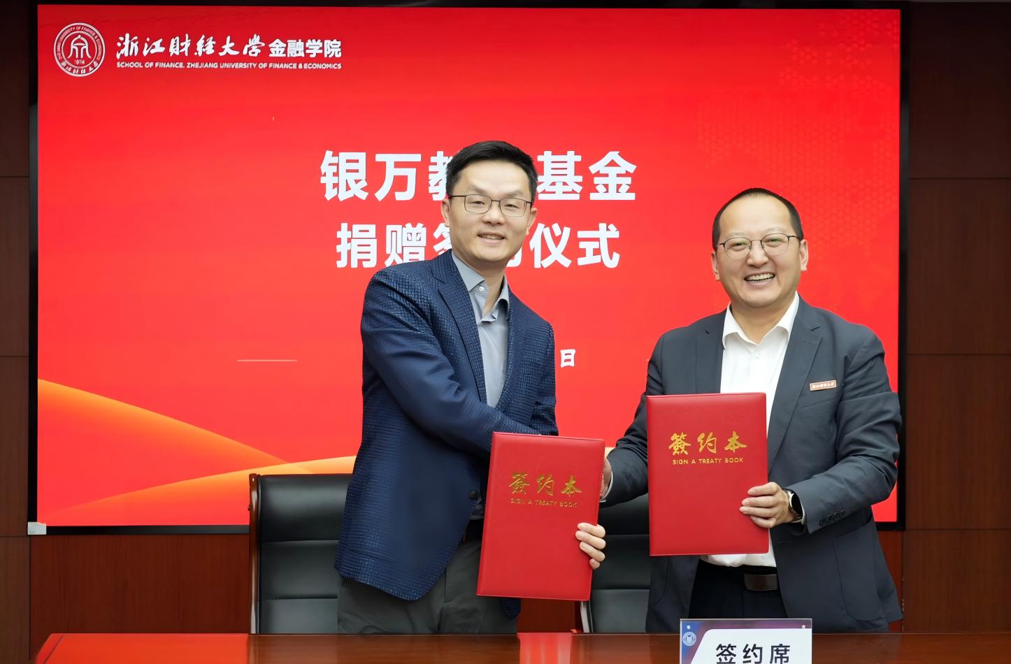 下沙校区行政楼412会议室举行。校党委副书记程爽,浙江银万私募基金管理有限公司创始合伙人杜飞磊、赵峰等校友等出席仪式。