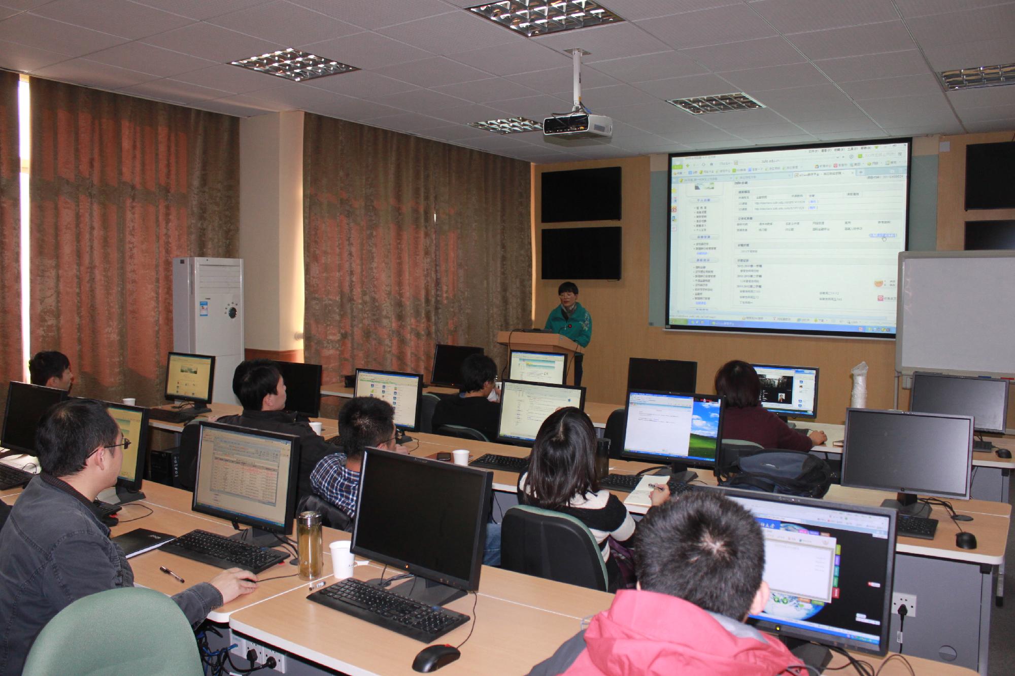 在主持人夏红芳副院长的简单介绍之后,座谈会正式开始。一开始,徐敏老师便直奔主题,她主要通过现场演示,在创建课程、上传教案和课件等方面向其他老师进行了详细的介绍。随后,徐敏老师又在网络课堂的具体操作上对老师们给予细心的指导。此外,她还指出老师们在网络课堂上批改作业、进行考试、批阅和修改学生论文以及和学生们进行学术交流讨论的便捷之处,方便老师与学生的沟通和强化课堂教学效果。参加此次座谈会的老师们都表现十分积极,在仔细聆听徐敏老师的讲解之后,也提出了自己在教学过程中的困扰和使用过程中遇到的问题,老师们还就这些问题进行了充分的交流,现场气氛十分热烈。