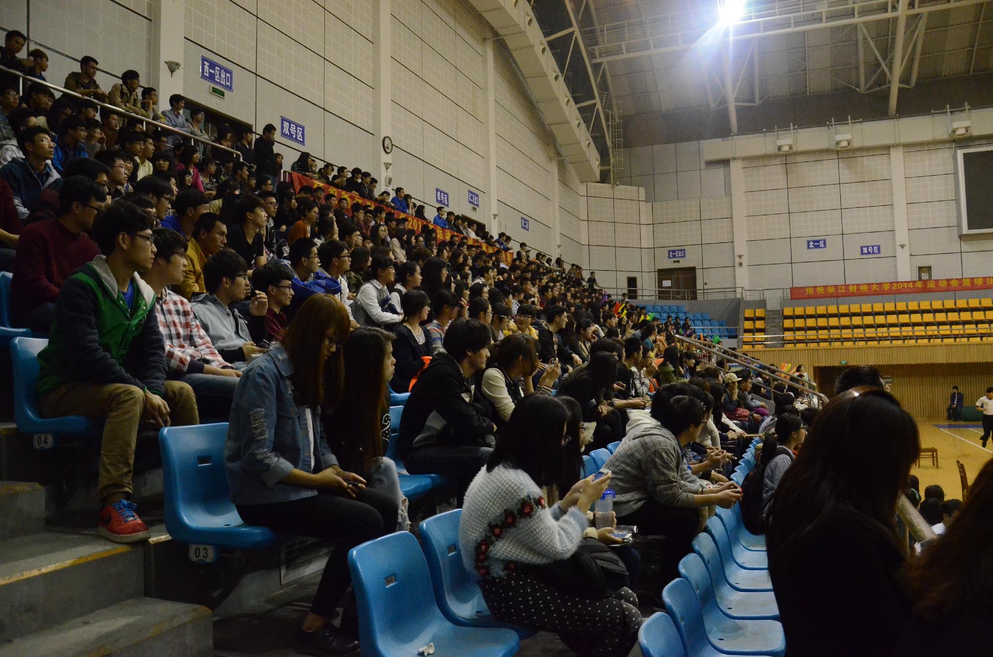 以16:10的微弱优势暂时领先。节间休息时,主持人带领观众进行了抽奖,被抽中的观众获得了校篮球队队员的签名照。第二节比赛随即展开,双方队员毫不懈怠,高超的球技、精彩的战术引得现场观众热情高涨,连连叫好。场上比分一度被赶超拉平,赛况十分激烈。第二节比赛结束,黄色仓库