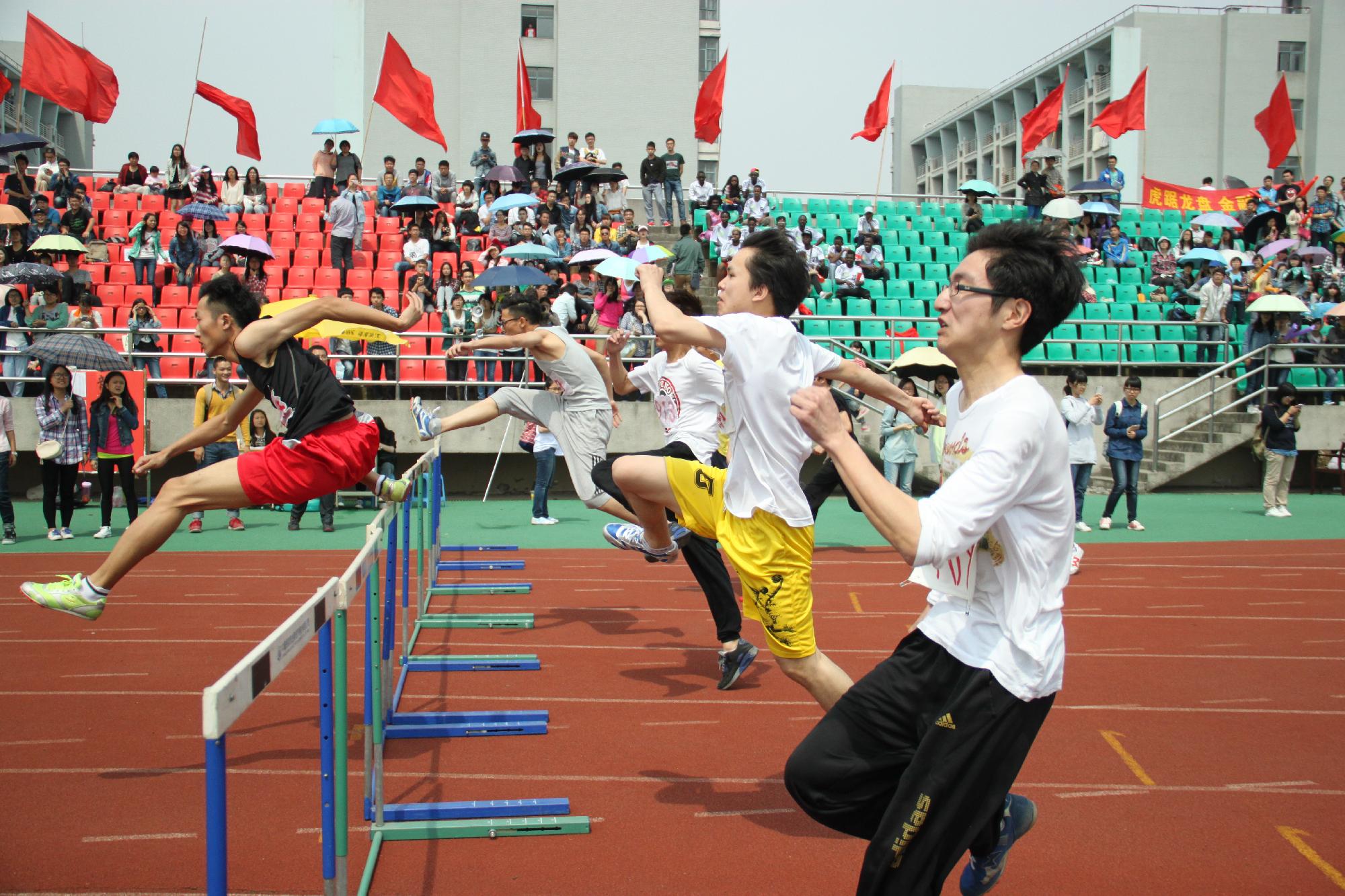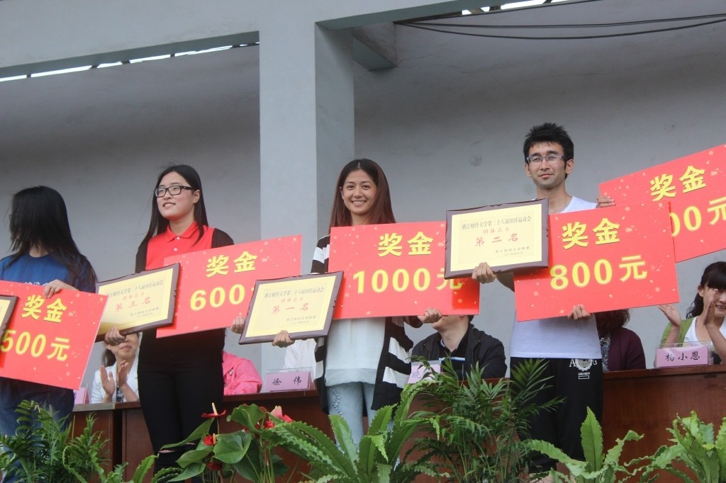 的运动员们更是意气风发,展现了他们果敢无畏的风采本色。女子400米栏,卢乔乔同学勇夺第一;章炜同学获得男子400米栏决赛第三名;潘陈静同学夺得女子1500米冠军;男子五项全能,叶关炯同学夺得冠军,屠飞炎同学也获得第四;铁饼决赛,方韬同学排名第二,侯浩然同学排名第四;女子三级跳远,王赢同学获得铜牌;男子1500米,努尔沙帕排名第二,张成恺同学排名第四;女子五项全能,许莹莹同学排名第三名……在男女4*100米接力赛中,金融更是势如破竹,包揽了两块金牌。