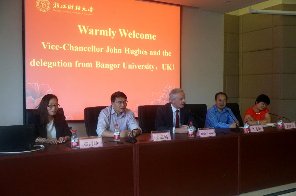 2015年9月22日下午,英国班戈大学约翰·休斯校长一行在校国际交流合作处处长余慕鸿的陪同下来到黄色仓库