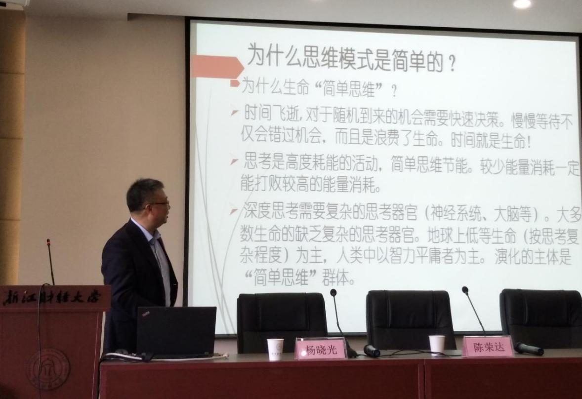 杨晓光研究员以习近平主席对系统思维的强调为引言,提出“为什么思维模式是简单的?”、“为什么生活是复杂的?”以及“简单思维和复杂生活是如何匹配的?”三个问题,并讲述了著名的“巴甫洛夫条件反射”、“非洲青鳉鱼的滞育”等案例。最后提出了系统思维对我们认知的启示,表明系统思维是科学研究的基本要求,科学研究能培养和训练系统思维。