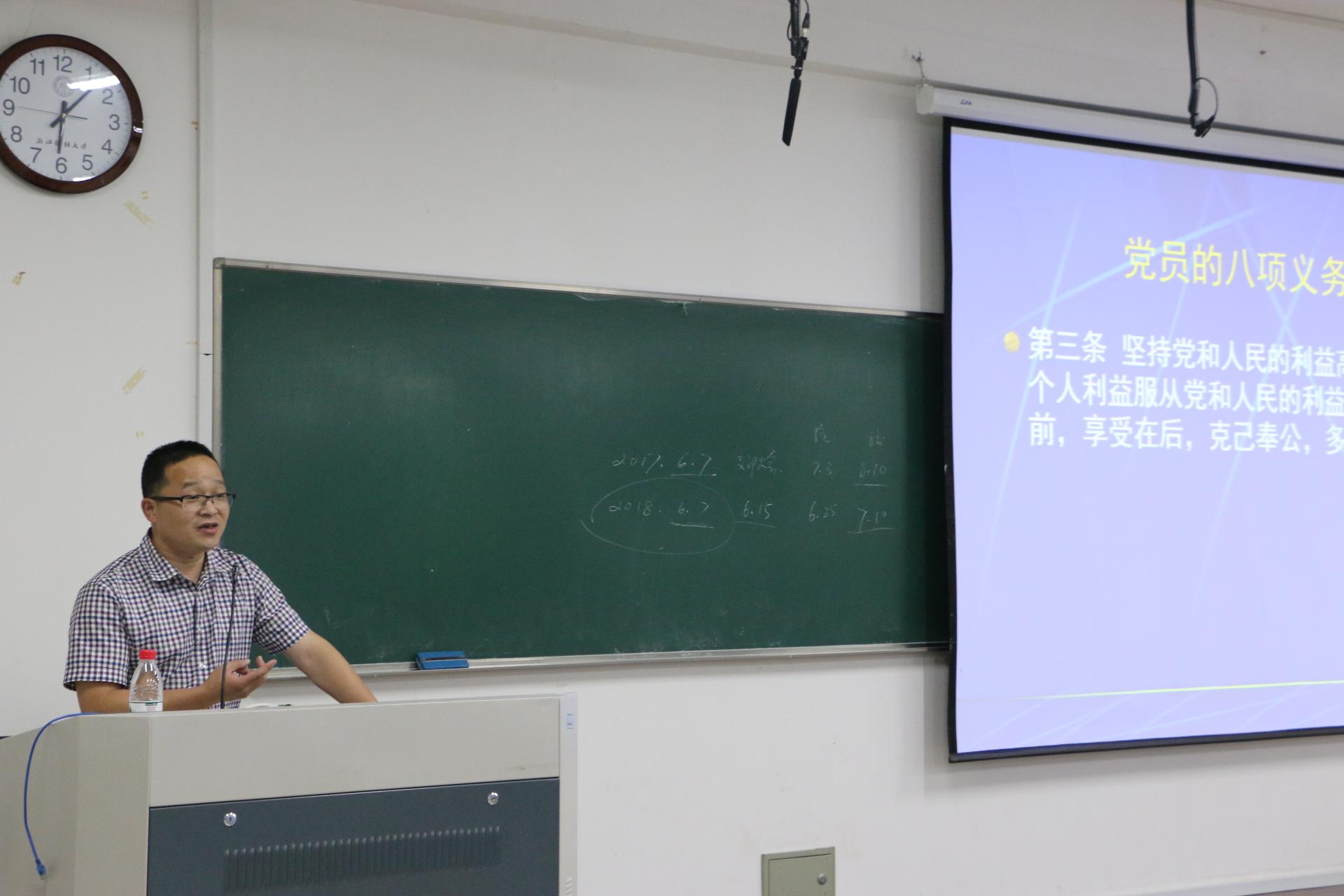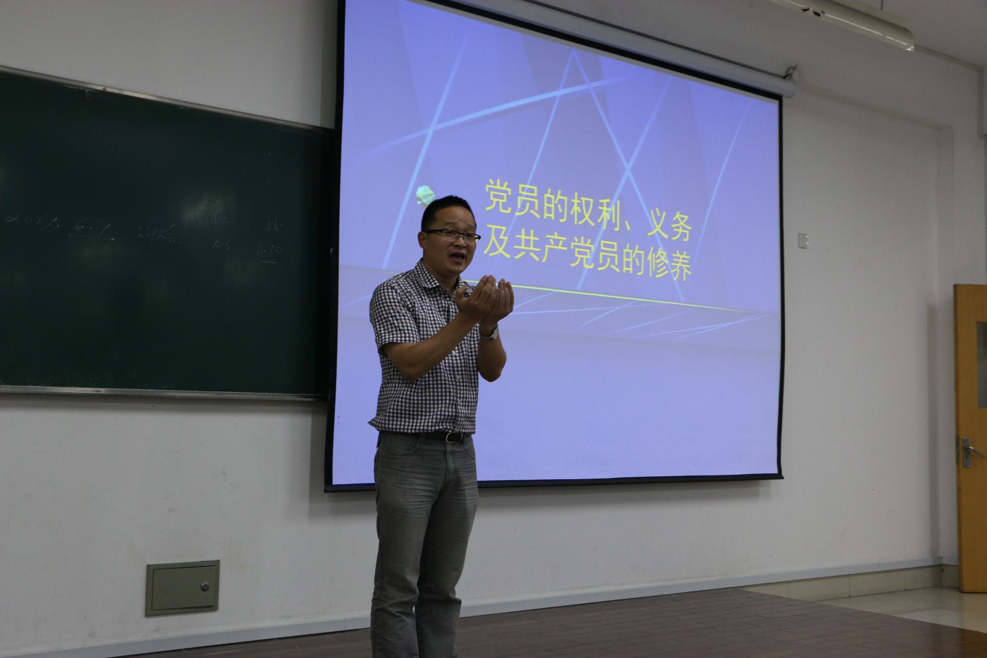 第19期最后一次党课在A205开课。此次请到了学工部部长范建锋老师作为主讲人。