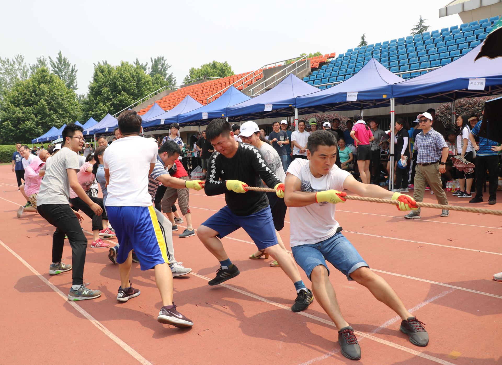 学院教工老师们也斗志昂扬,获得了女子60米第六名、男子一百米第六名、男子铅球第七名等多项荣誉。在4×100接力、运球接力和拔河比赛中,老师们团结协作,配合默契。