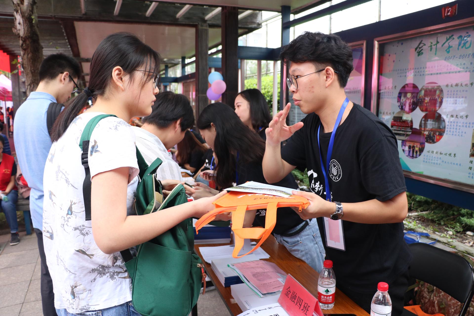 清早,便陆续有新生在家长的陪同下前来报到,在文化长廊的新生班导和学生会同学们也开始忙碌起来,报到登记、领取材料、寝室入住,在志愿者的引导下都显得井然有序。值得一提的是,在场的志愿者,不少是2018级新生。今年,学院还别出心裁地在报到点设置了一面 “金融人”照片框,安排了新媒体中心的摄影记者为新生拍摄报到照片,和父母、亲友一起定格这值得纪念的一刻。学院院长陈荣达、党委书记蔡国金、党委副书记叶秀、新生辅导员也来到迎新现场与新生及家长沟通交流。