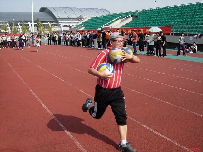 虽然比赛只有短暂的一天,但轻松、活泼的气氛却在延续,在这个后奥运时代,老师们也有一颗充满活力的心。(蒋清清 苏扬/摄)