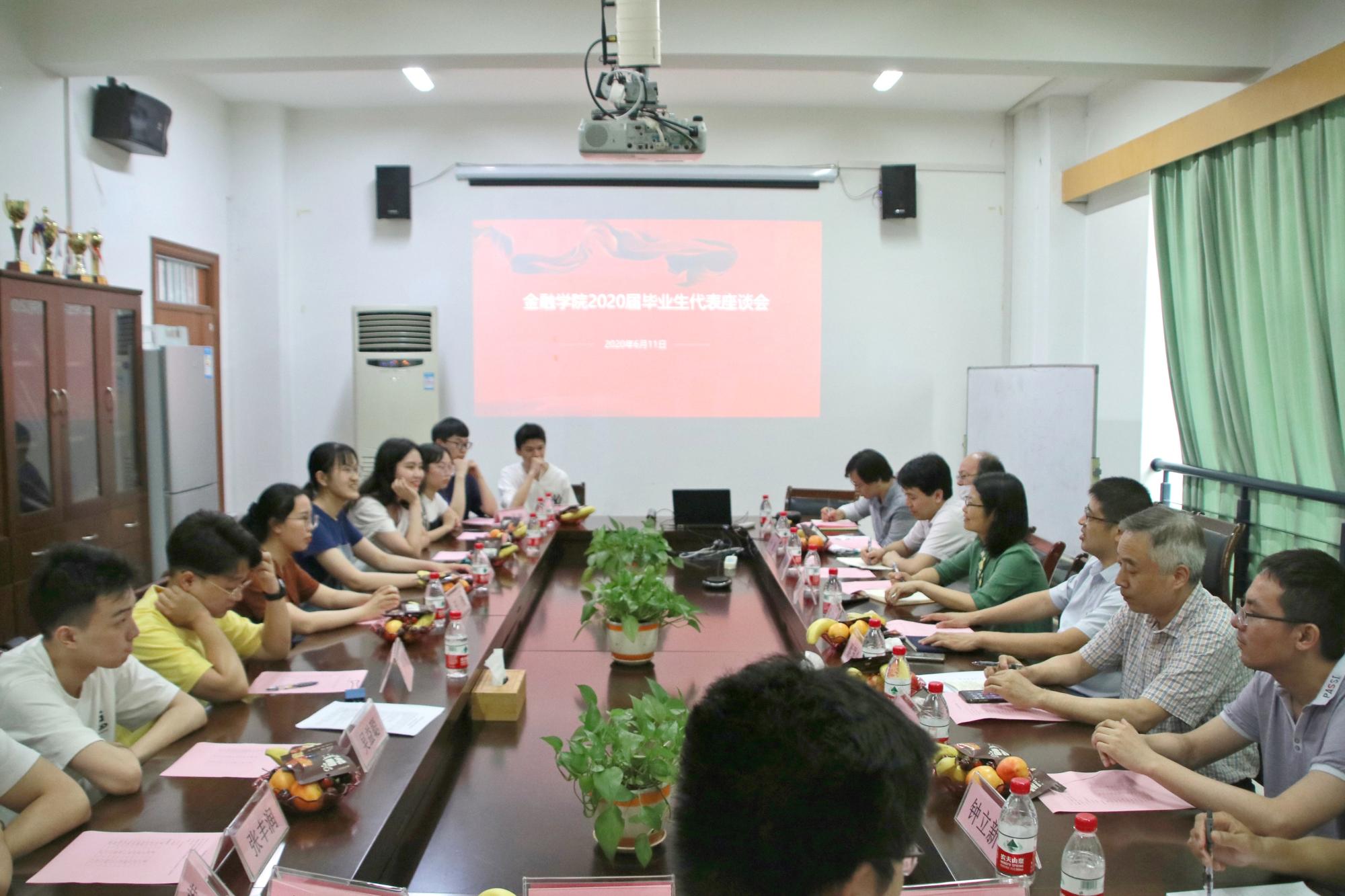2020届毕业生座谈会在学院楼422会议室举行,学院领导班子成员、系主任、国际教育中心主任、毕业班辅导员和来自各班的毕业生代表参加了座谈会,会议由学院党委副书记谢敏主持。