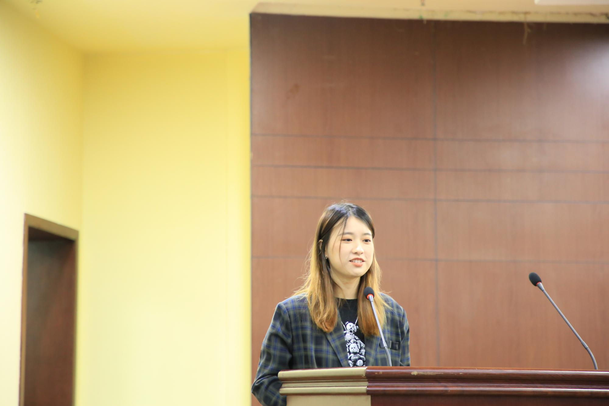潘乐同学来自17国际金融专业,在学生工作方面颇有心得。她曾任职于校学生会文艺部,目前是校学生会主席团成员。她为同学们详细介绍了学院和学校主要学生组织的架构、功能和运营问题。并细数了自己在校学生会工作的心路历程,她鼓励同学们积极参与学生工作,“接触更多的人,接触到更多优秀的人,使自己成为更为优秀的人。接触更多的事,接触更多你未经历的事,学会去做更多你从未做过的事”。