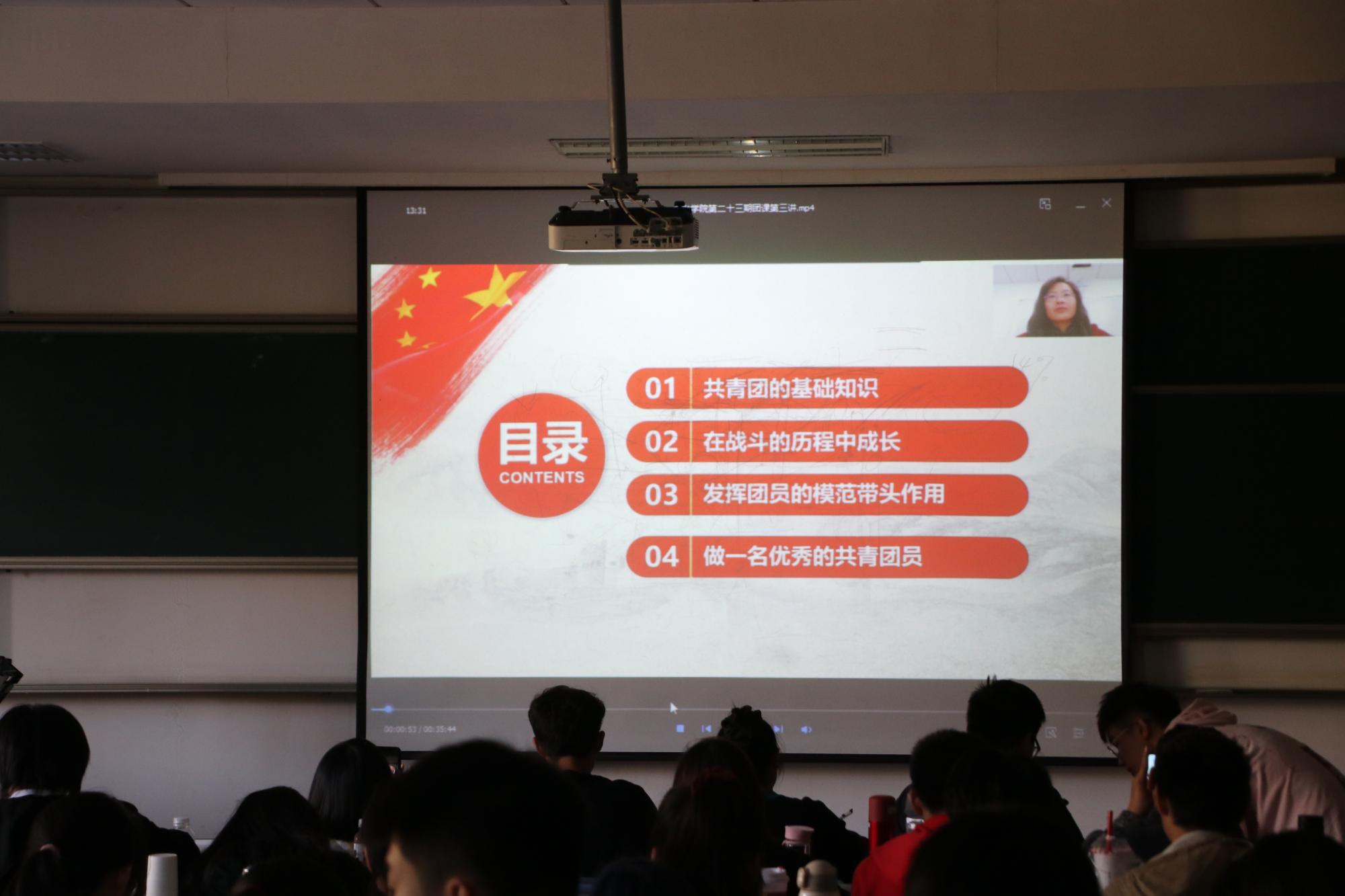 11月12日下午,王伟伟老师以录播的形式在学院楼开展了团课第三讲。她首先介绍了团旗、团徽、团歌以及共青团的发展历史与光荣传统,加深了同学们对团的理解。她希望同学们牢记自己的团员身份,牢固树立公民意识、法治意识和规则意识,立足于本职工作,充分发挥挥团员的先锋模范作用。最后她鼓励金融学子不断努力奋斗,提升专业素养,成为有理想、敢担当、不保守、肯付出的栋梁之材。