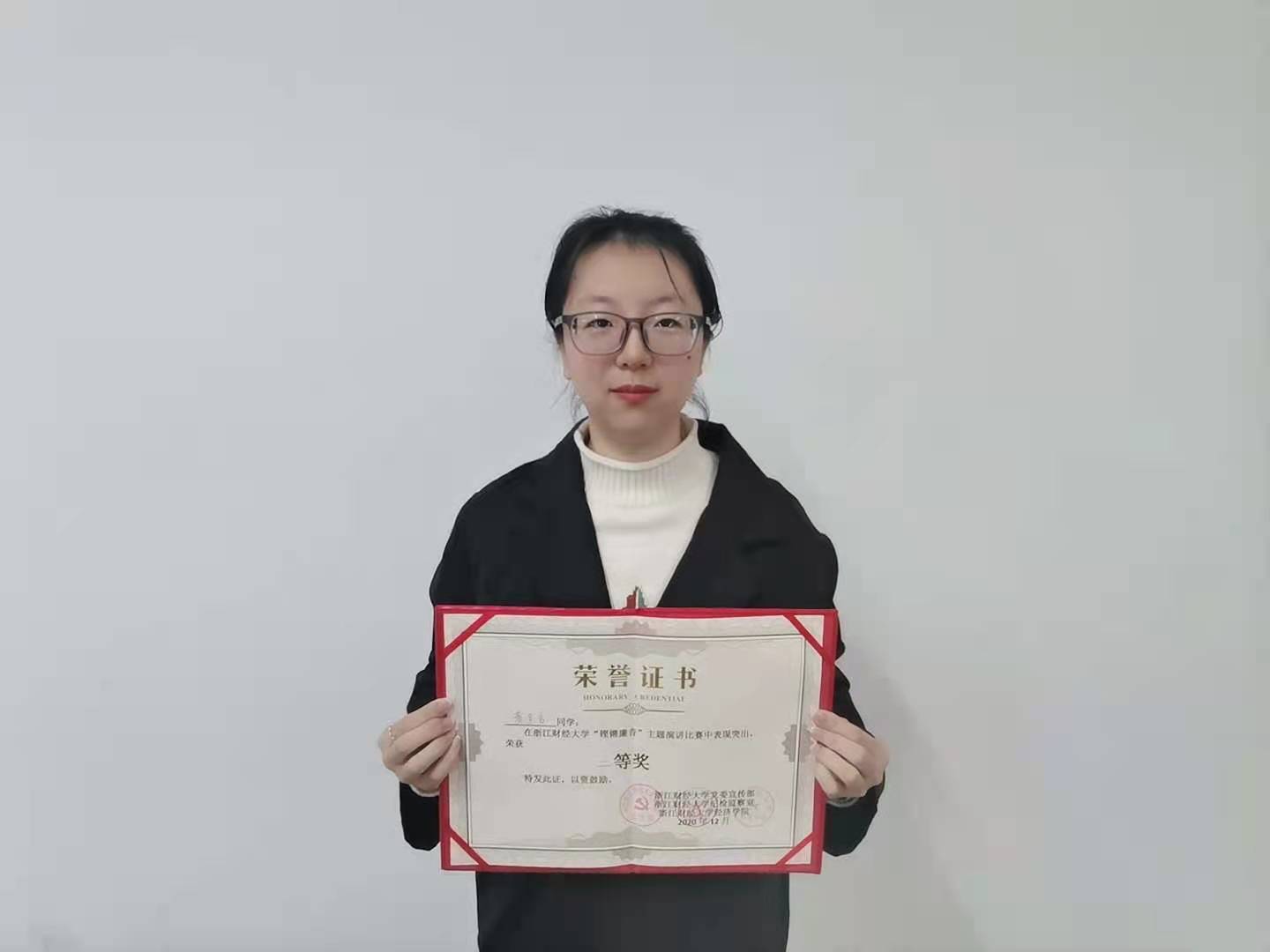 12月10日,第三届“铿锵廉音”主题演讲比赛在下沙校区举行。来自全校各学院的12名参赛选手紧扣“清风拂我心·廉洁伴我行”这一主题,用质朴的语言,鲜活的事例,真挚的感情,分享了自己对“廉洁”的看法与认识,体现了当代大学生良好的思辨精神和强烈的社会责任感。经过激烈角逐,黄色仓库 黄圣言同学获得比赛二等奖。