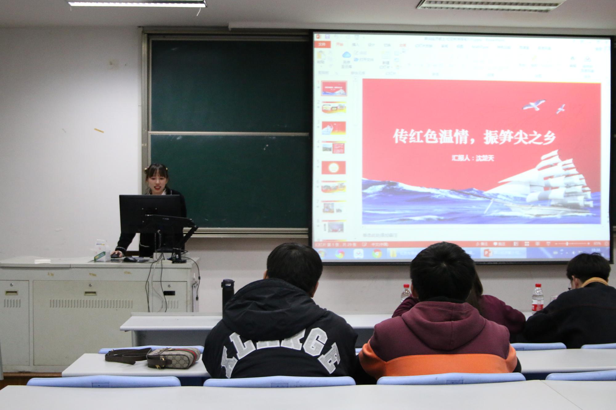 宣讲人通过幻灯片播放,视频展示等方式,将红色实践行程向我们娓娓道来。一张张照片,展现了祖国的沧桑巨变;一段段视频的背后,是每个党员血液里流淌着的红色基因和为人民服务的不变初心。在交流过程中,同学们深切的感受到了在党的领导下,中国在脱贫攻坚,乡村振兴等方面取得的巨大进步。