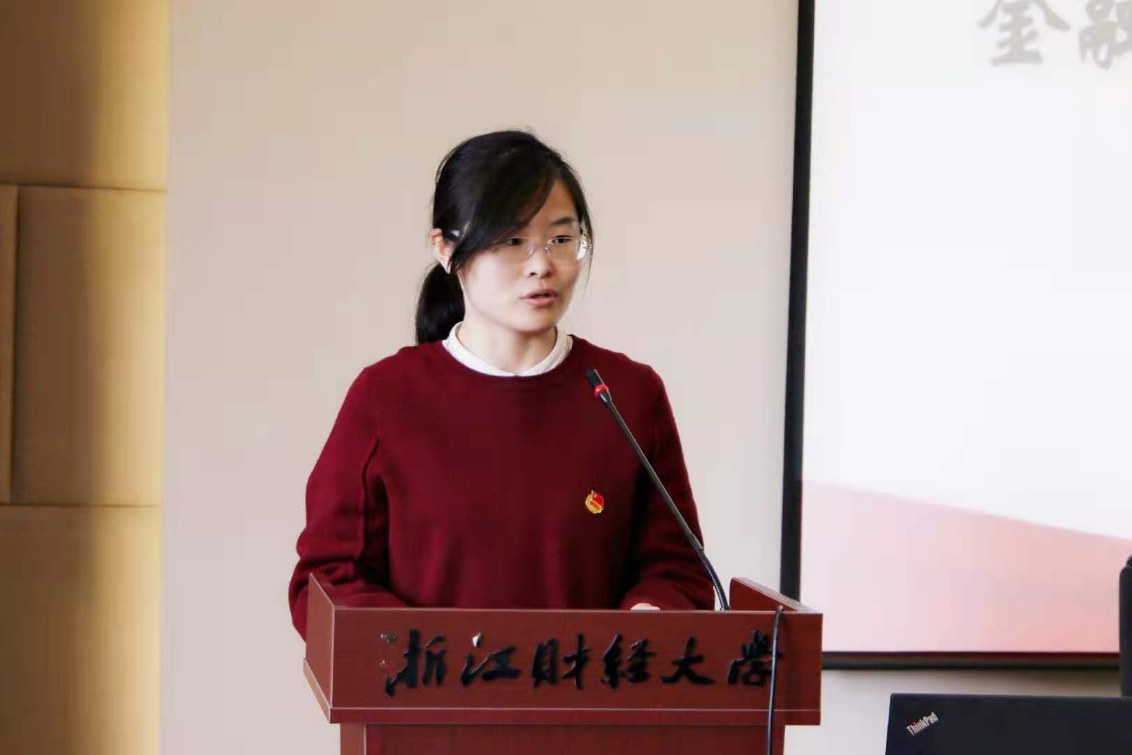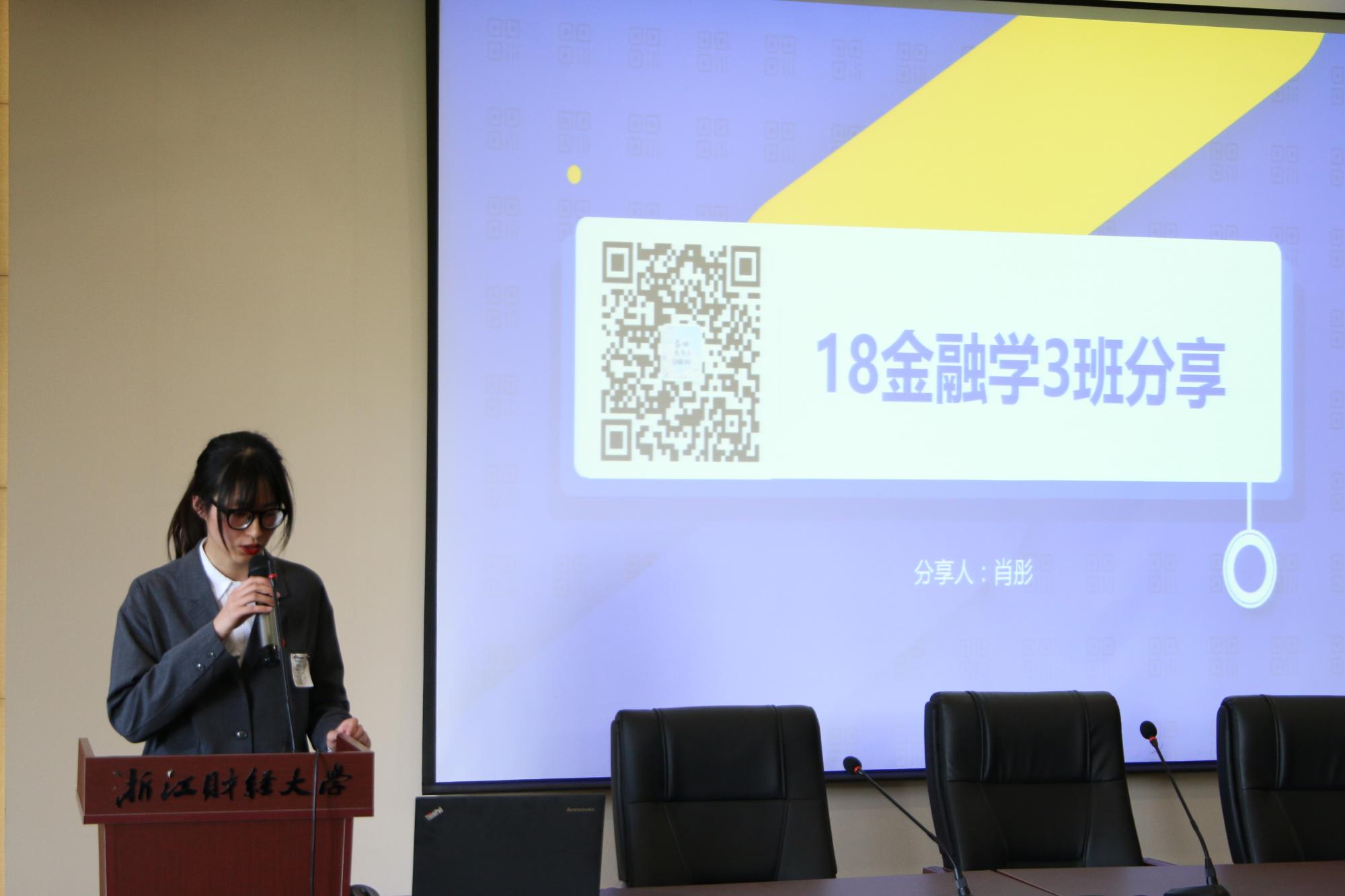 曾获浙江省 “千强团支部”荣誉称号的18金融3班团支部,也应邀为大家做分享。团支书肖彤从凝聚力、创新特色、优势互补三个角度分享了她对于班团建设的体会。她认为支部活动的开展应特别注意广泛征集支部同学的意见,增强支部成员的沟通。