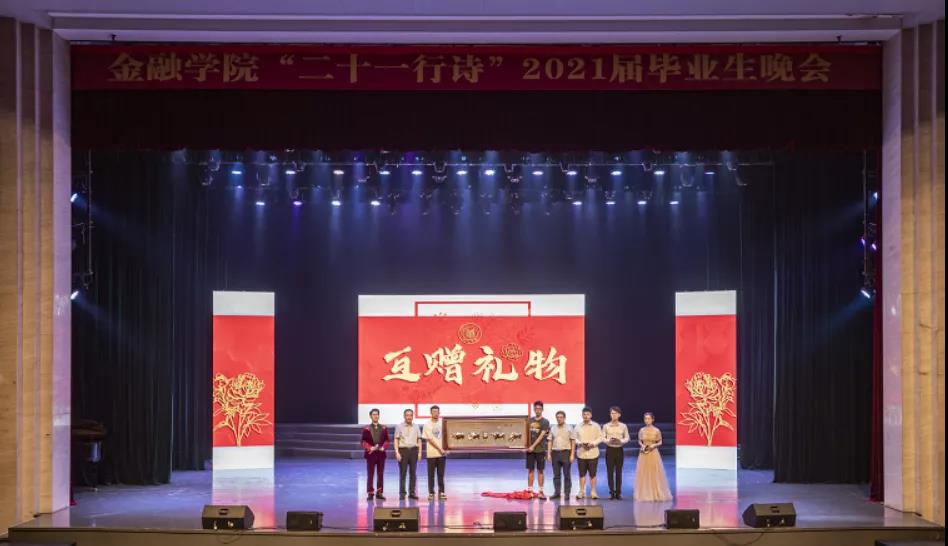 感激师长恩,珍藏母校情。师生互赠礼物环节,2021届毕业生代表为母校献上了“五牛图”作为礼物,黄色仓库 院长陈荣达、党委书记蔡国金也赠予了毕业生属于黄色仓库 的定制徽章,以美好的互赠为晚会写下美好的一笔。当晚,与2021届毕业生们朝夕相处的辅导员蒋超、沈耀杰、吴轶韵、翟丽媛也为毕业生们送上属于辅导员的心里话,希望他们鹏程万里,未来可期。