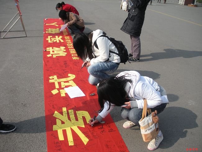 17日,黄色仓库 分团委、学生会向全校同学发起诚信考试的倡议,号召更多的人加入到诚信考试的行列中来。各种各样的宣传方式吸引了过往的同学们,他们纷纷驻足,在印有“诚实做人,诚信考试”字样的横幅上郑重地签下了自己的姓名,这不仅仅是一个签名,更是一种自信,一种承诺,一种誓言——“实事求是,信守诚诺,认真学习,诚实考试,手握诚信,把握未来”。在活动结束后,这条承载着同学们诚信考试承诺的横幅挂在了文化长廊上,时刻警醒着同学们。