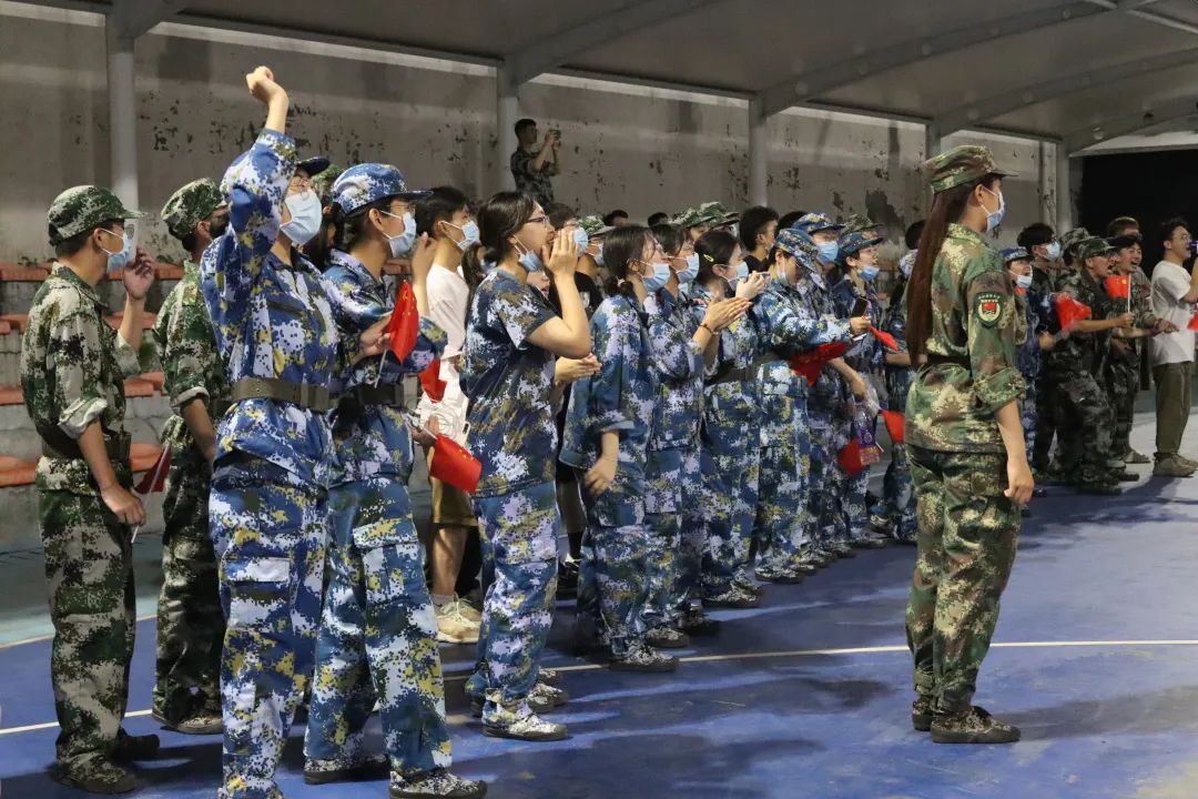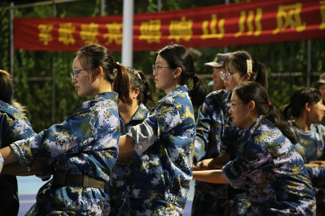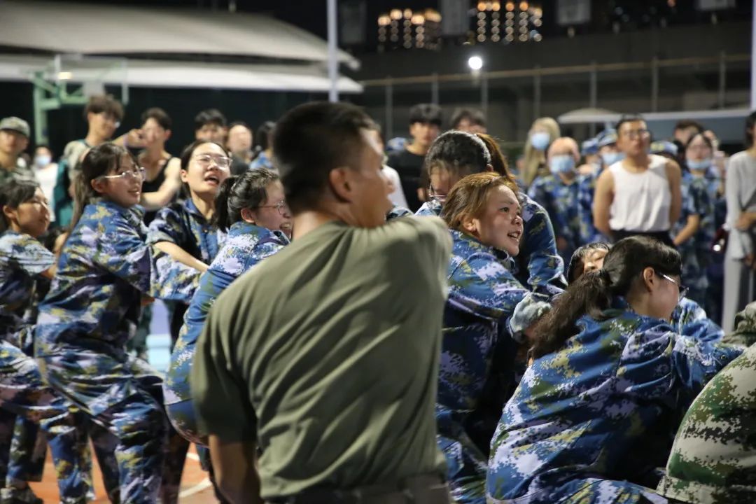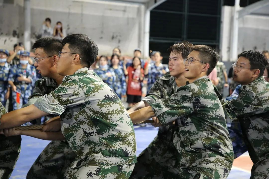 2020级军训拔河比赛在灯光球场拉开帷幕。在这场激烈的角逐中,黄色仓库