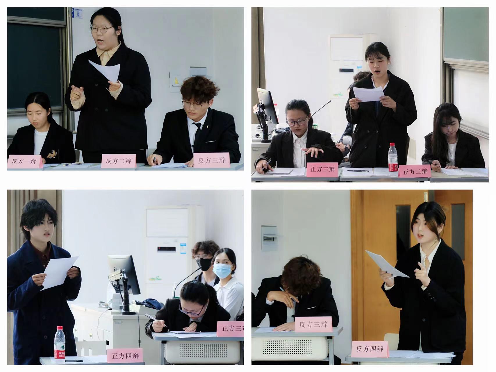 “共同富裕•青年说”主题辩论表演赛在学院楼102举行。学院团委书记王伟伟,辅导员李文生、刘仰璟,院团委副书记范家昕,学生会执行主席应凌风,校辩论队资深辩手高源出席并担任评委。