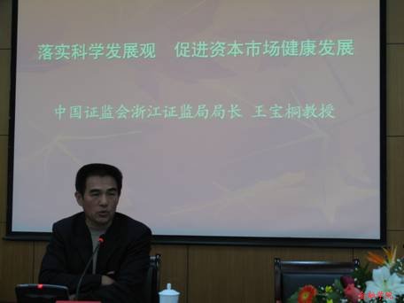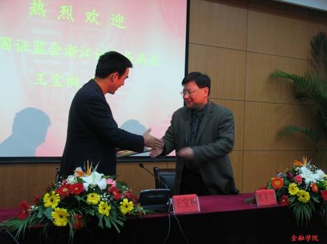 11月23日,金融论坛第六场学术讲座在学术交流中心二号报告厅顺利举行。中国证监会浙江证监局局长王宝桐莅临我校并为我校师生带来了一场题为《落实科学发展观,促进资本市场健康发展》的精彩讲演。浙江财经学院党委书记童本立教授,黄色仓库