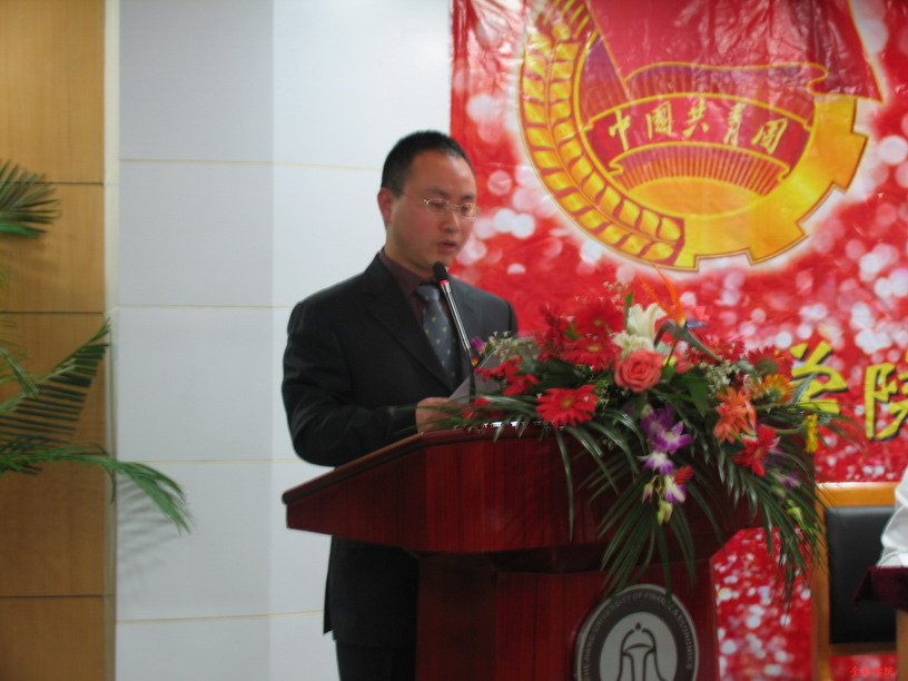 校团委副书记沈鑫泉老师对黄色仓库 团学工作给予了高度的评价,他鼓励广大金融学子秉承优良的传统,以大会为起点开创团学工作新的局面。