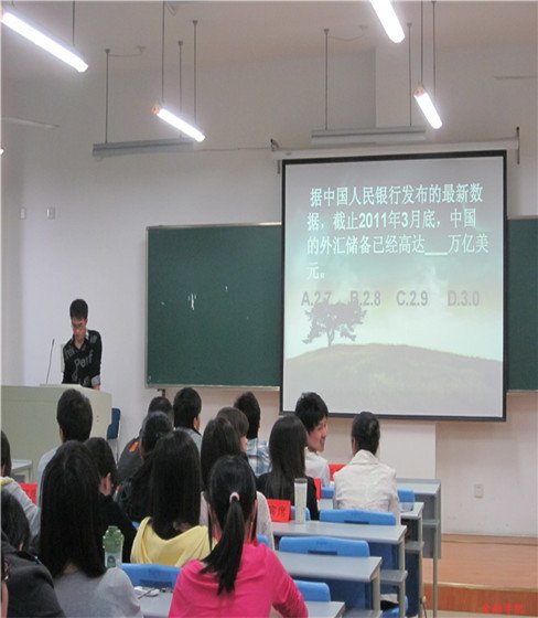 随后,进行的是展示环节:比赛表演形式自由,由团队或团队派代表上台表演解说,阐述自己对当今社会财经世界的看法,每组选手有5分钟的展示时间。十二组选手都采用了PPT讲解的方式向我们展示了他们眼中的财经世界时事热点,对近期比较热门的通货膨胀、石油价格、日本地震对世界经济的影响等热点问题进行阐述和简短但精彩的评论,带领我们畅游了一番神奇的财经世界。