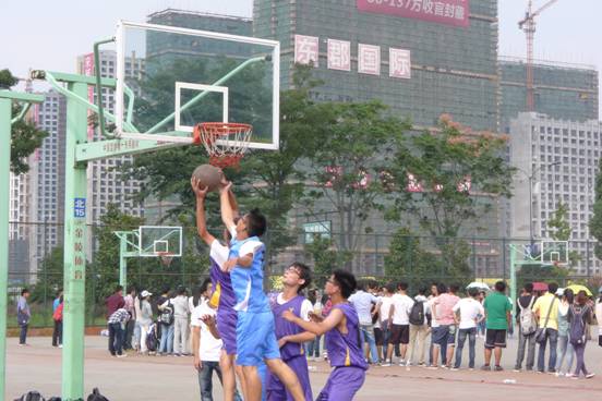 第一届新生篮球赛在篮球场拉开了帷幕。黄色仓库