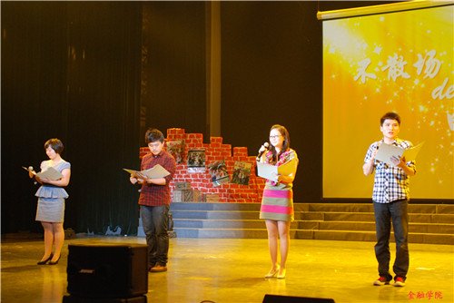 随后,T台走秀,秀出了金融学子的自信与对未来的满腔热情;器乐书法表演,用书法表达了对毕业生的诚挚祝福“前程似锦”。而郗河老师的出场则将现场气氛推向了整场晚会的高潮。他用最坚毅的嗓音,唱出了《水手》那百折不挠的精神,更是向毕业生们诉说着:应对未来,我们要更坚强,更勇敢。台下的金融学子深受感染,全体起立,挥舞着手臂,师生一起用最洪亮的声音,演绎出了最震撼人心的大合唱。