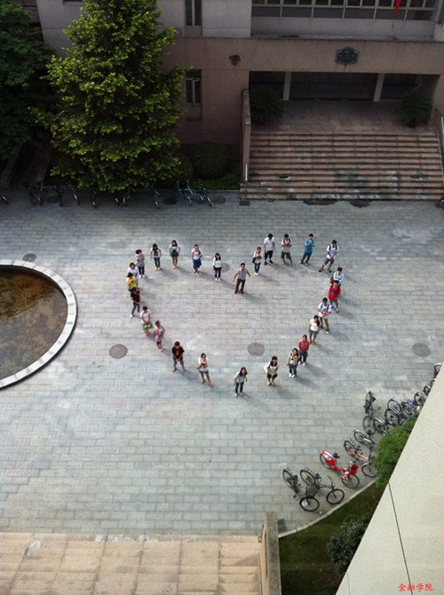 到场的部分学生围成心形,对着学院楼的方向喊出对老师们的祝福,声声祝福化作暖流萦绕师生们的心间。