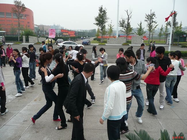 体育部联合学生会各部门,在学校体育馆前的广场上举行了“迎校庆华尔兹宣传倡议与培训”活动,吸引了来往同学的热切的关注和积极的参与。