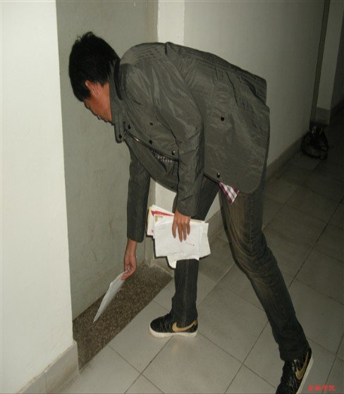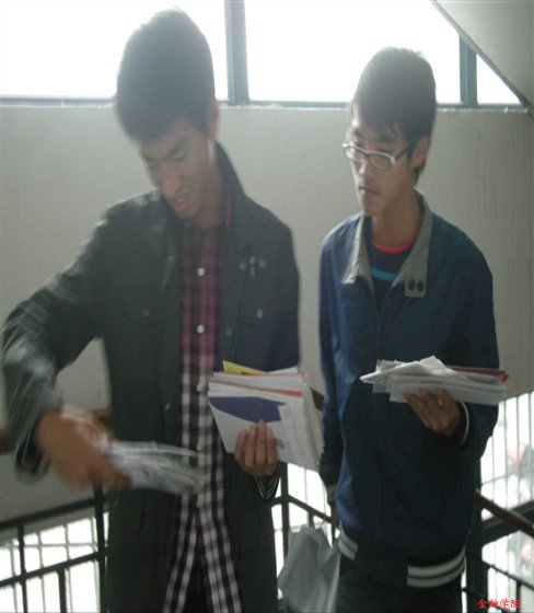 志愿者们到达宿舍楼后,向寝室管理人员说明了来意,并进行了人员信息登记。管理人员很热情地拿出了近期的信件,志愿者们便按楼层开始整理信件。随后,每位志愿者拿着一大叠信件,开始了分发的工作。只见志愿者们从楼层的一端开始,轻轻地将信件塞进门缝中,一个寝室一个寝室,分发到了另一端。
