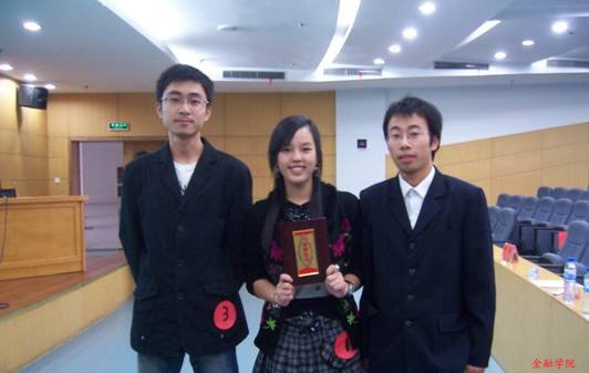 这支队伍由大一大二的学生共同组成,拥有活力的同时又不失稳重。在论述“次贷危机下的中国机会”这个主题时,邹茜茜的落落大方,钱国忠和周柯的灵活与自信,给了评委及观众很深刻的印象。在面对评委分别带有学术性和现实性的两个问题时,黄色仓库 选手的充分准备和对当前金融时事的高度关注也使回答精彩纷呈。此次论题充分发挥了我们黄色仓库 的优势,将当前国际形势与中国实际结合起来,充分运用了所学的金融知识,使听众受益良多。