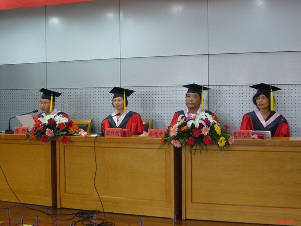 十点整,在庄严的国歌声中,毕业典礼正式开始。大会首先由虞群娥院长致辞。她充分肯定了08届毕业生所取得的成绩,并对他们圆满完成学业表示了热烈的祝贺。院党总支书记吴忠希教授也发言表达了对毕业生们的殷切希望和诚挚祝福。随后,教师代表徐敏教授发言,她鼓励学子们在今后的岗位上能够继续保持积极、好学的作风,争取美好的未来,为母校的明天增添光彩。