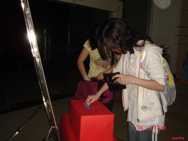 5月14日晚,募捐活动刚刚开始,学院大厅人潮涌动,广大师生纷纷踊跃捐款。随着一位女生向募捐箱投入100元人民币,成为学生捐款百元第一人后,大批学生争先恐后手持自己的“爱心款”投入捐款箱。5月15日一早开始,又有许多同学和班级代表专门来到黄色仓库
