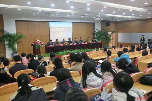 近日,浙江财经学院第二届“广发杯”模拟证券投资竞赛闭幕式在学术中心二号报告厅隆重举行。副校长钟晓敏、东方证券首席分析师凌俊杰先生、广东发展银行杭州分行个金部副总经理陈琳先生等嘉宾出席了本次闭幕式。