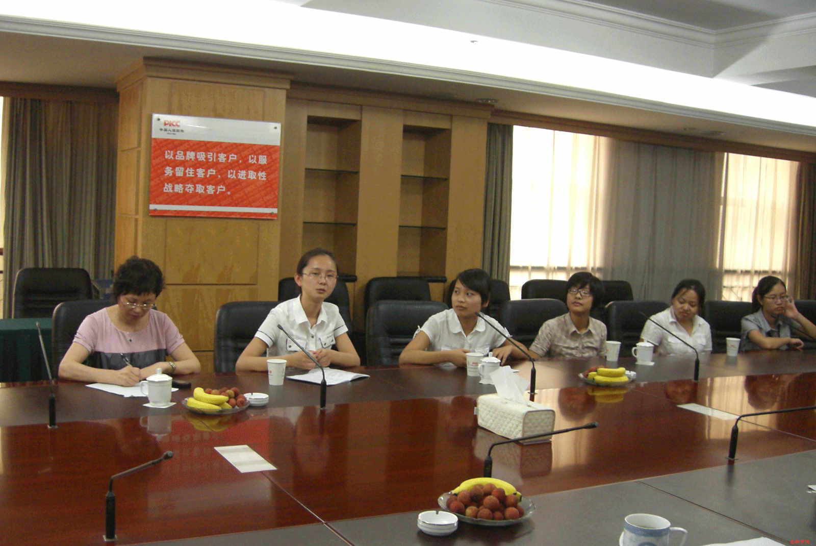 和中国人民财产保险公司针对“实习——就业团”的实习情况开了一次座谈会。参加此次会议的有人民财产保险公司的几位高管和黄色仓库