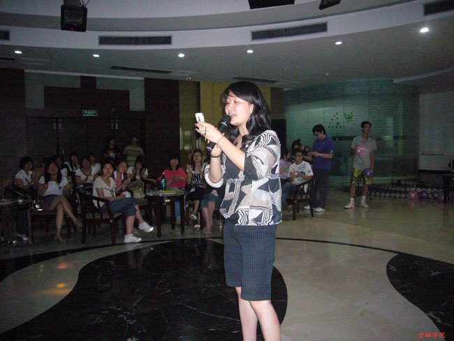 05公司金融以及05金融公司的同学们带来了准备已久的曲目,美妙的歌喉不禁让在场的所有的观众都陶醉其中,掌声此起彼伏。没有离别的悲伤,没有毕业的忧愁,有的是大学的美好回忆。在接下来“先声夺人”的游戏环节,毕业生们抛开羞涩,纷纷抢着话筒大声地唱出心中的歌,尽管有些离线,尽管有些生疏,但是所有人都能体会到那一份温馨,许多人四年里没有在大家面前唱过一首歌,而今夜一展歌喉!我们学院的分团委书记张虹老师倾情演唱的<<让我们荡起双桨》引起全场轰动,掌声此起彼伏,绵延不绝。