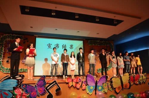 第四轮是比赛的高潮,也是整场晚会的重中之重。保险班的舞蹈《漫舞青春》让大家眼前一亮,将晚会从安静聆听重新点燃成热情迸发。你方唱罢我登场,四轮紧张激烈的比赛后,学生政治辅导员尹怀玉老师和薛腾老师宣读了比赛结果。两位选手难分高下,桂冠最终被施昊恬与邵翼天两名同学共同摘得。徐琳晶同学不负众望,获得了十佳歌手季军称号。