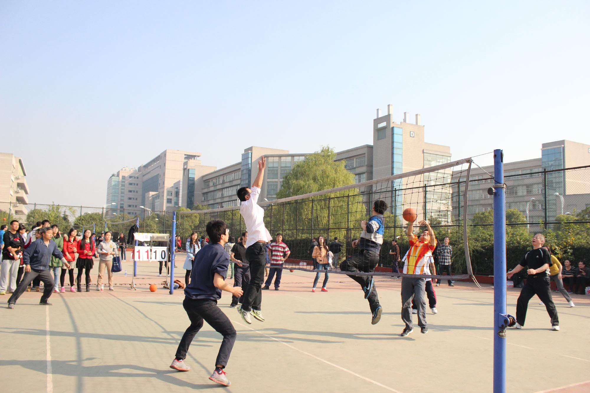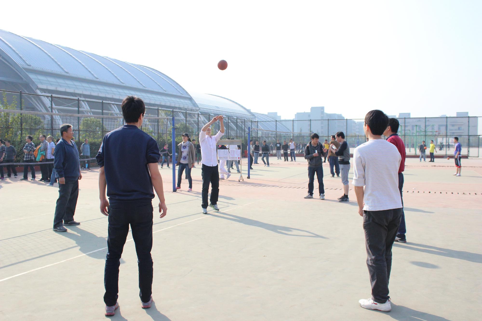 教职工排球赛在北排球场顺利举行。黄色仓库
