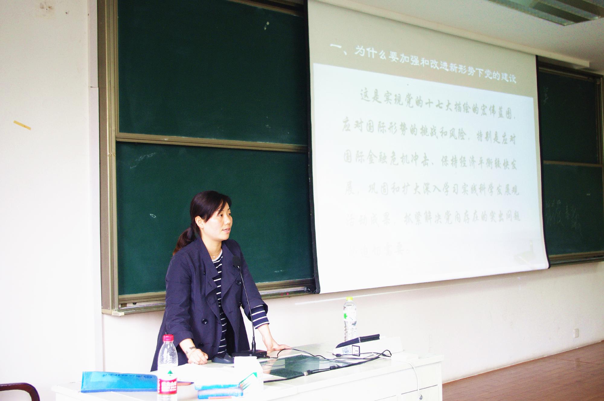 429日下午14:40,以“将强和改进新形势下党的建设”为题的党课在学院楼102教室顺利开讲,申屠莉老师作为主讲人为同学们上了一节内容丰富的党课。