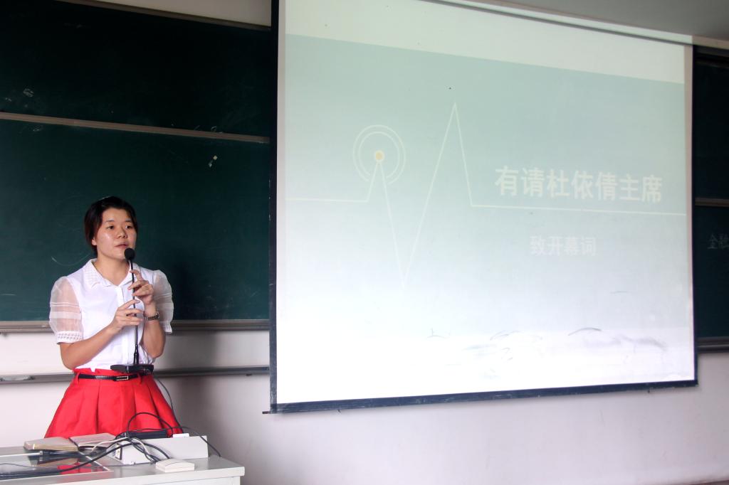学生会主席杜依倩致开幕词并由实践部负责人对此次迎新工作进行了详细的部署。她通过ppt向与会者具体而清晰地讲解了到岗时间、新生的住宿分布、迎新点设置、雨天应急方案等内容。她还特别强调了准时到场、给予新生准确的引导等工作注意事项。尤其对独自报道的新生要给予热情的帮助,如帮助搬运大件行李等。