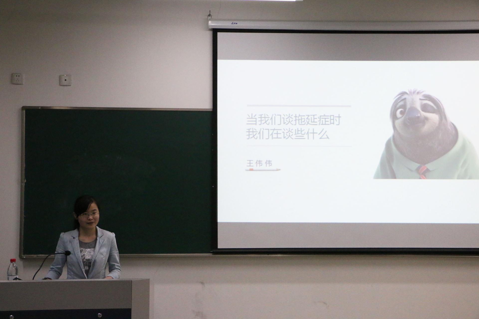 心理辅导站王伟伟老师主讲的心理讲座“当我们在谈拖延症的时候,我们在谈什么”在学院楼107教室顺利开讲。辅导员蒋超、吴轶韵老师出席了本次讲座。