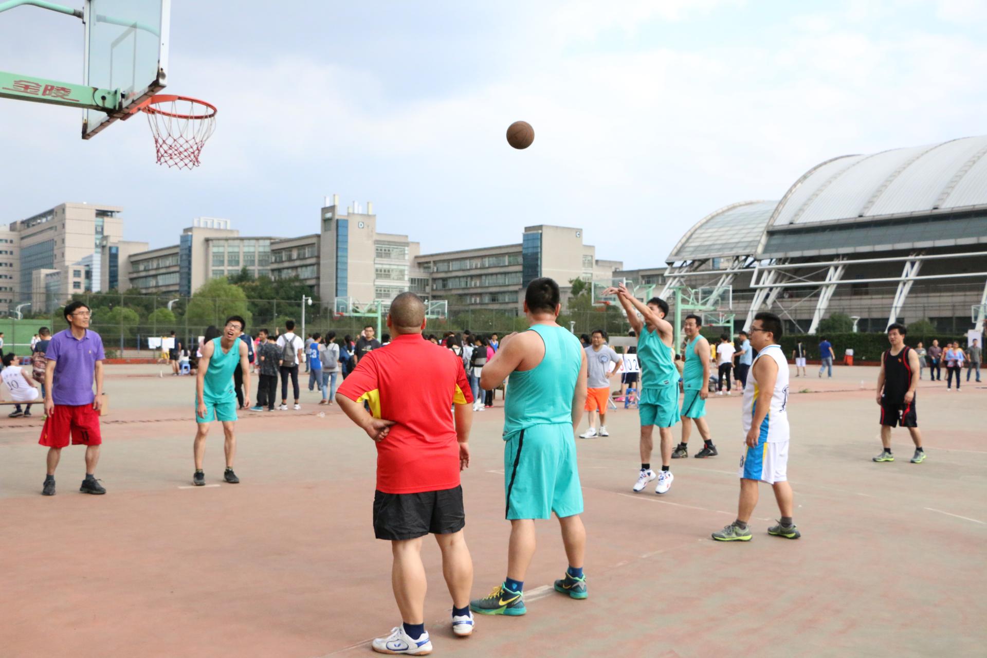 2016年教职工篮球小组赛在北篮球场热血开赛。黄色仓库
